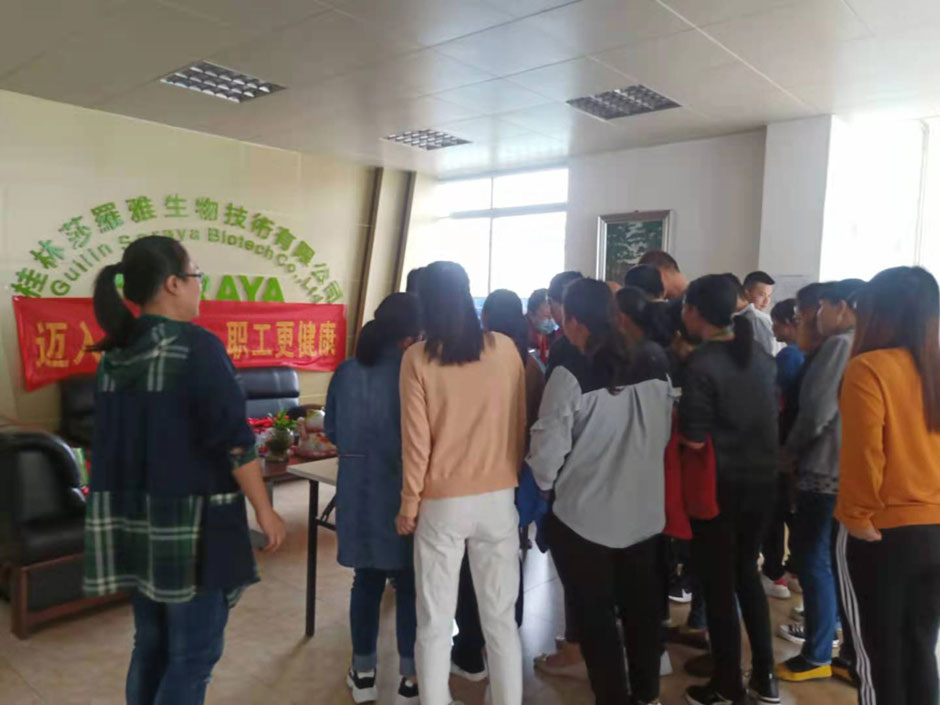 2021年5月7日,為了進一步提高員工的職業危害防護意識,幫助員工養成職業危害防護習慣,保障員工的身體健康,桂林莎羅雅公司邀請了“桂林疾病預防控制中心”的專家老師為全體員工做了一次生動明了的職業危害防治知識的宣貫和培訓,宣貫過程中,全員積極參與,提問、要資料,現場反應熱烈。
